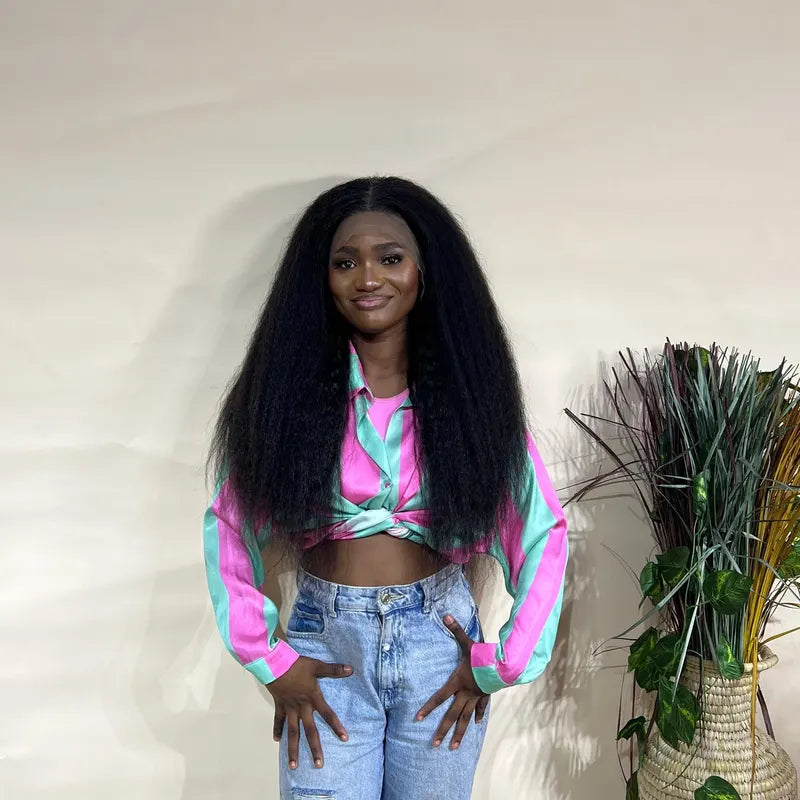 13x4 Lace Frontal Wig 22” 300g – Afro Kinky Straight Wig with Elastic Band | Natural Texture Long Lace Wig for Black Women
