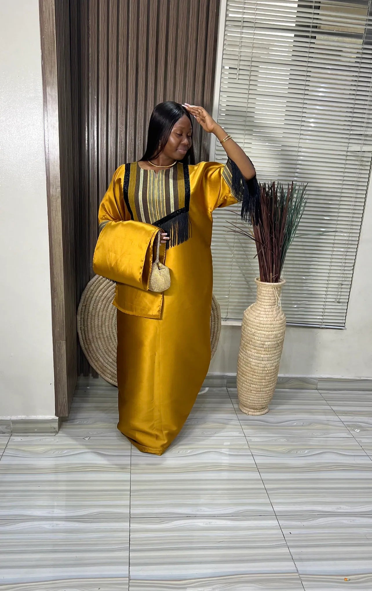• Crafted from luxurious sequin Mikado with bold Aso Oke fringe
