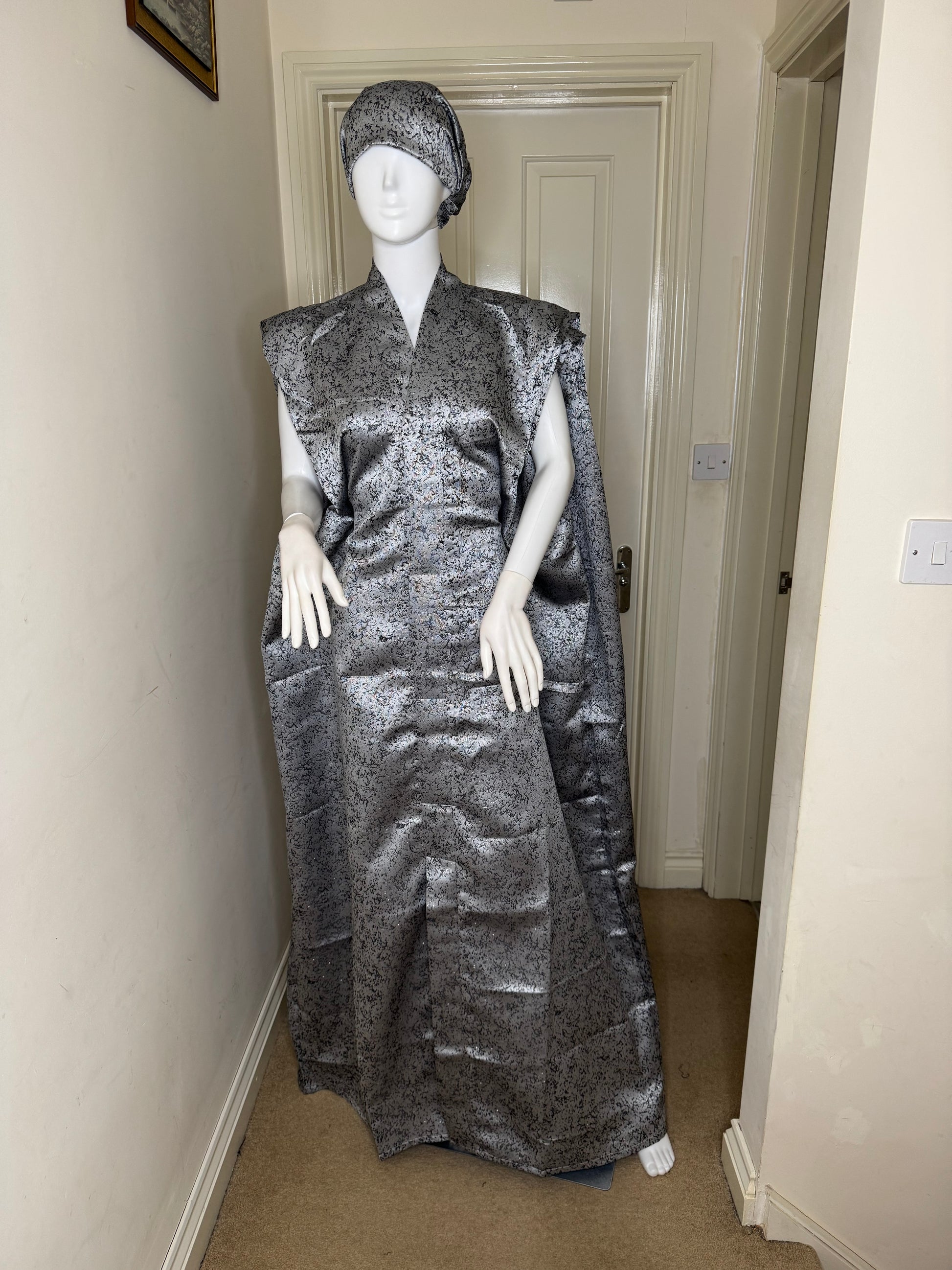 Jayla – Metallic Brocade Boubou with Hidden Waist Belt & Matching Headwrap
