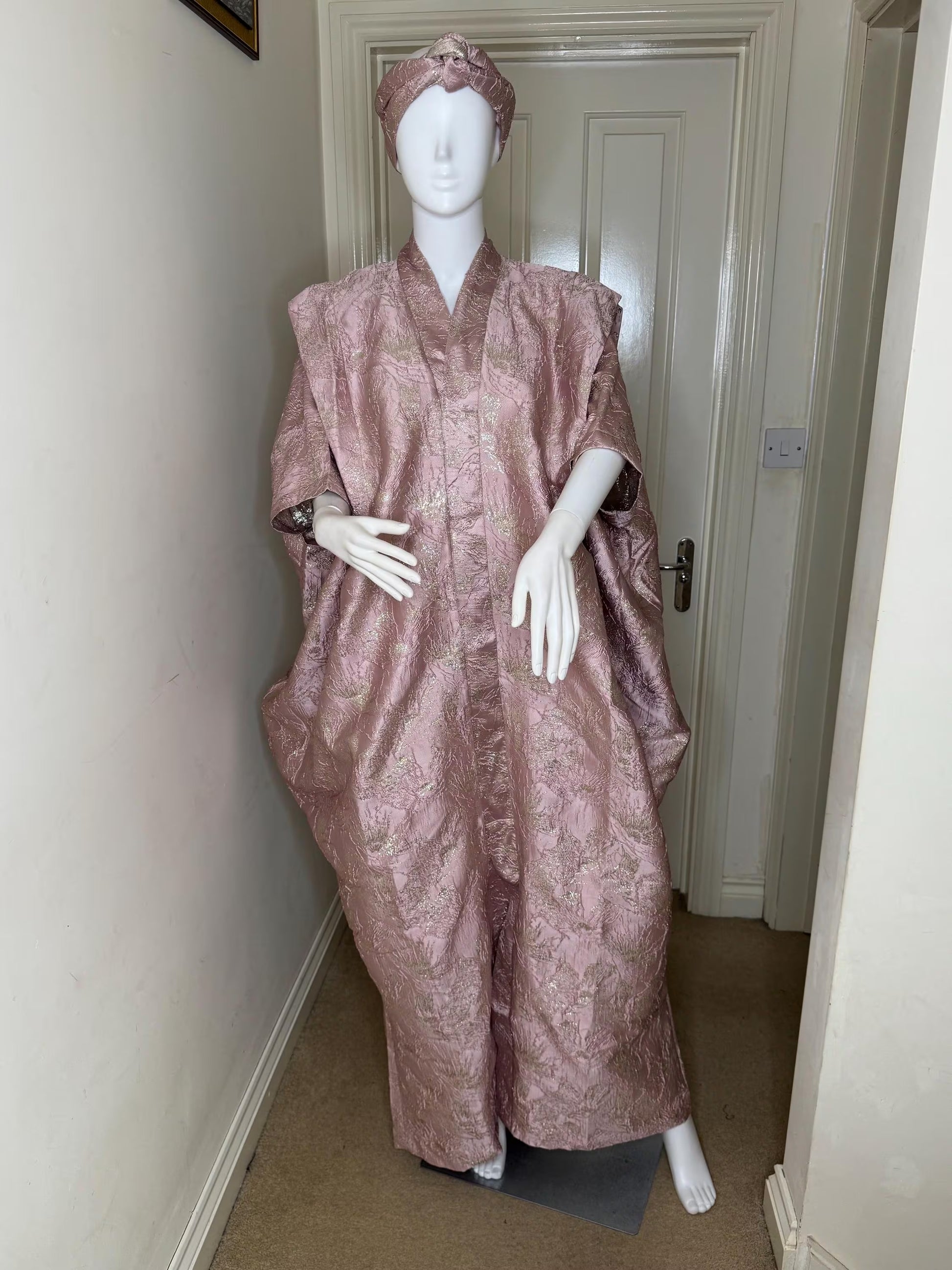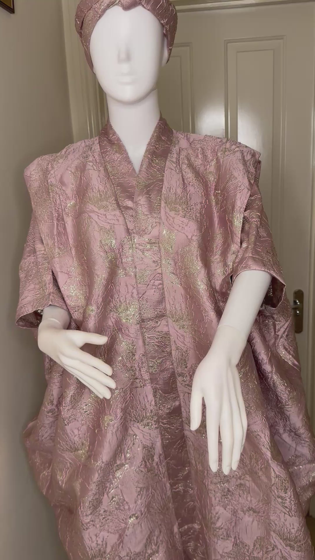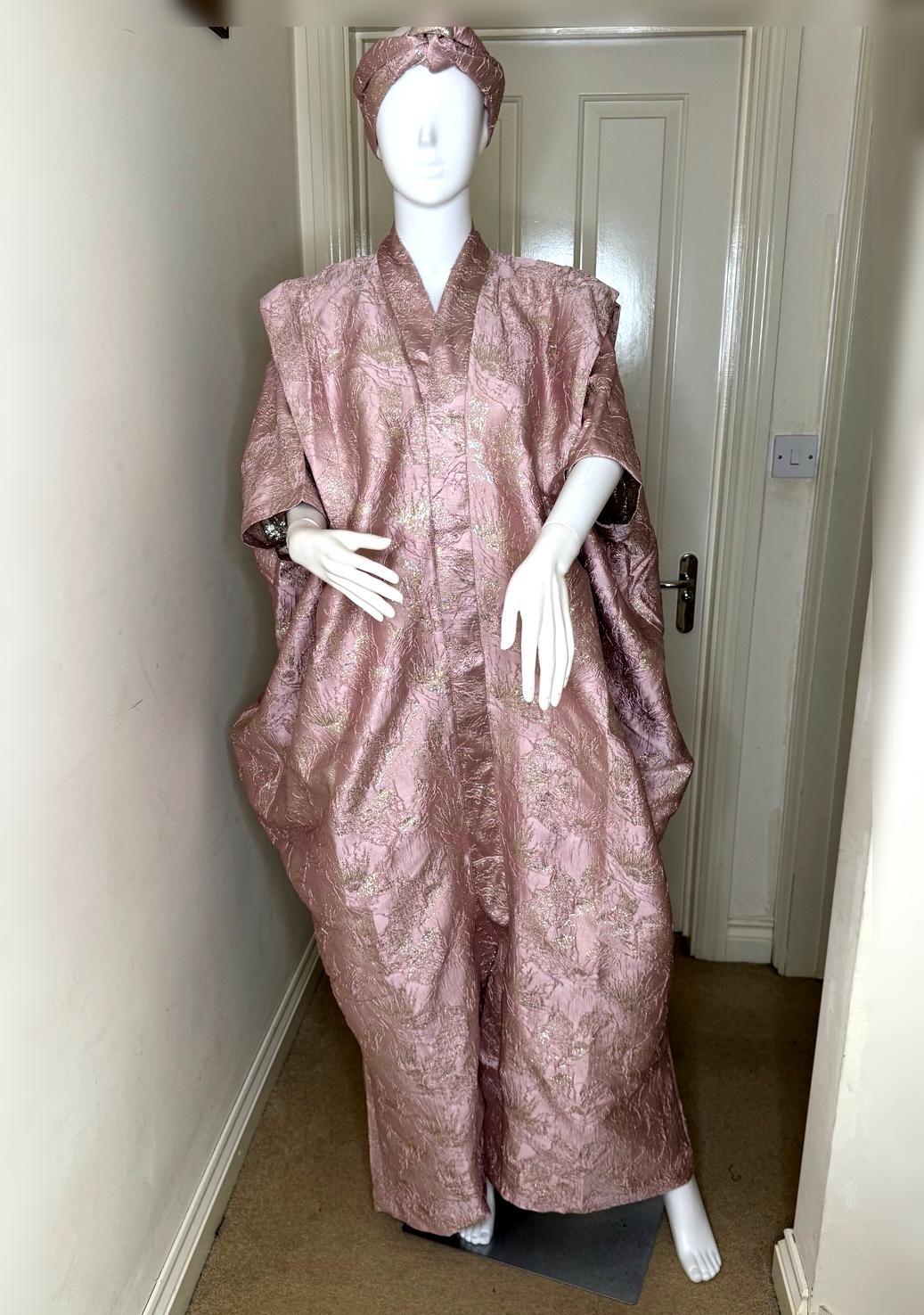 Omobewaji – Metallic Brocade Boubou with Hidden Waist Belt & Matching Headwrap ✨
