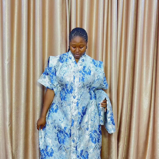 Elevate your look with our luxurious Brocade Boubou Dress, Designed in a flowing free-size silhouette with a matching headwrap, this elegant kaftan offers effortless comfort and cultural sophistication. Perfect for weddings, parties, and everyday luxury.