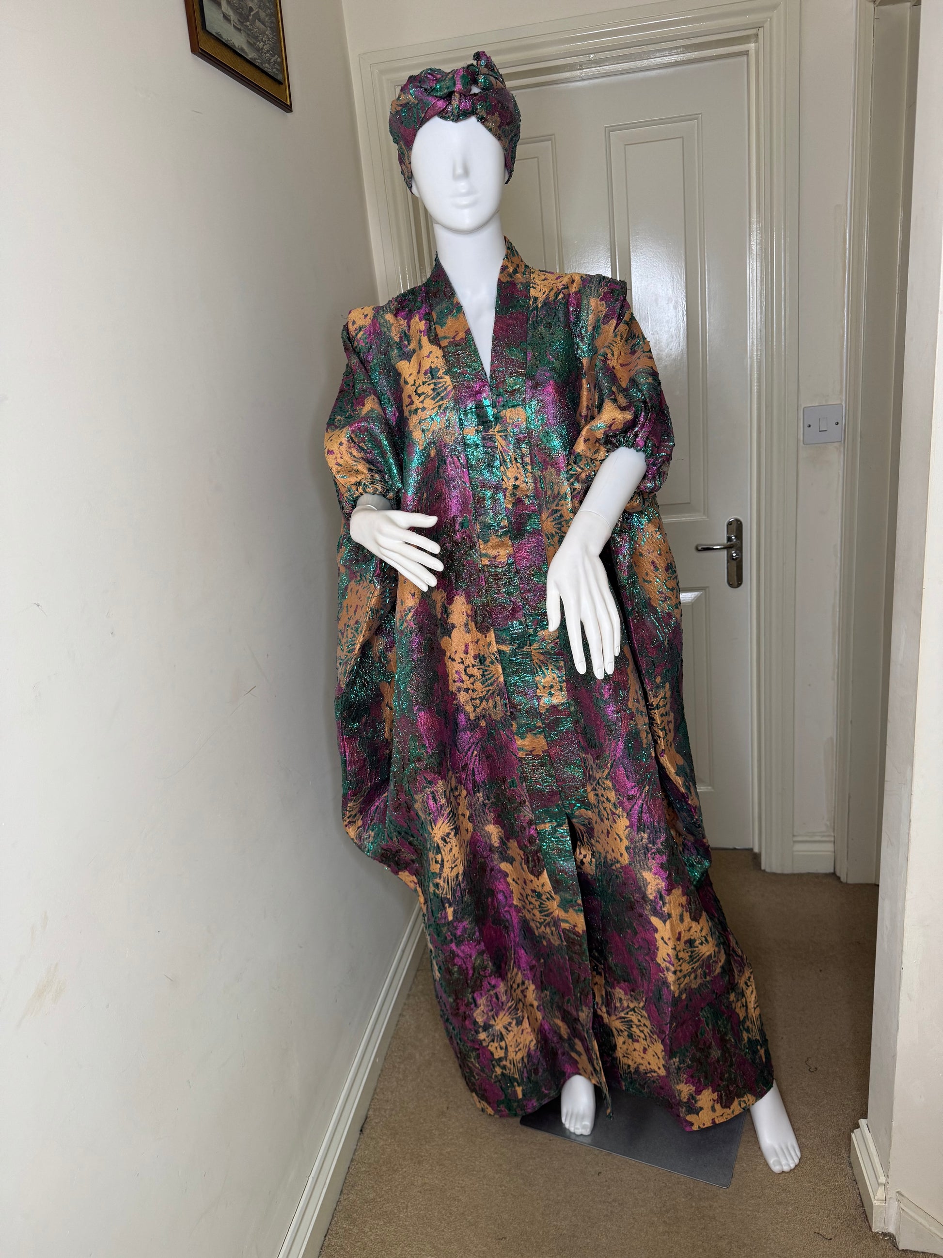 Zahra – Metallic Brocade Boubou with Hidden Waist Belt & Matching Headwrap